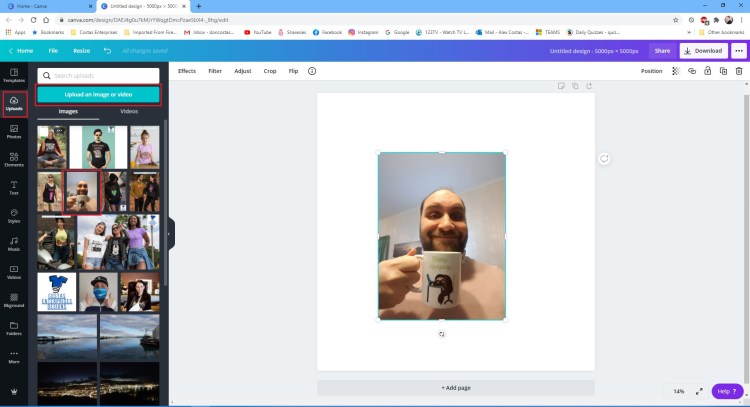 So next up as you can see is Uploads. This one is pretty self explanatory … you can upload your own image and/or design and then add them to your canvas.