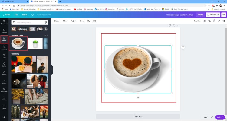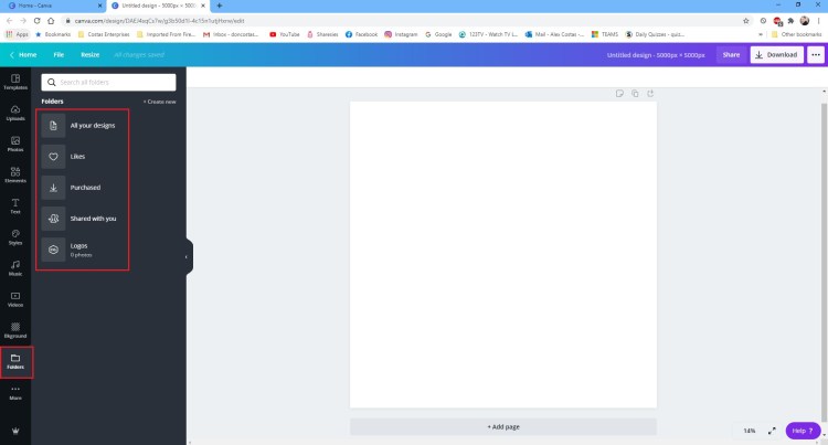 For this I will be creating a Custom Dimension Design of 5000 Pixels by 5000. Once you click the ‘Create Design’ you will be taken to the below default screen.