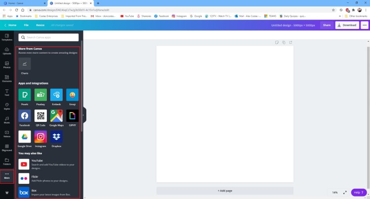 The “More” section is where you can see the other cool features or ‘plugins’ that integrate with Canva.