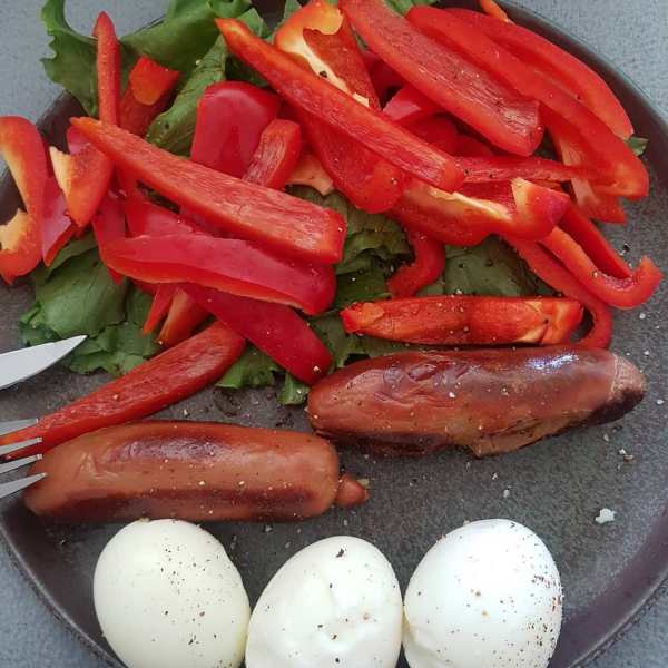 My main goto for breakfast is simply boiled eggs with sausages and veges.